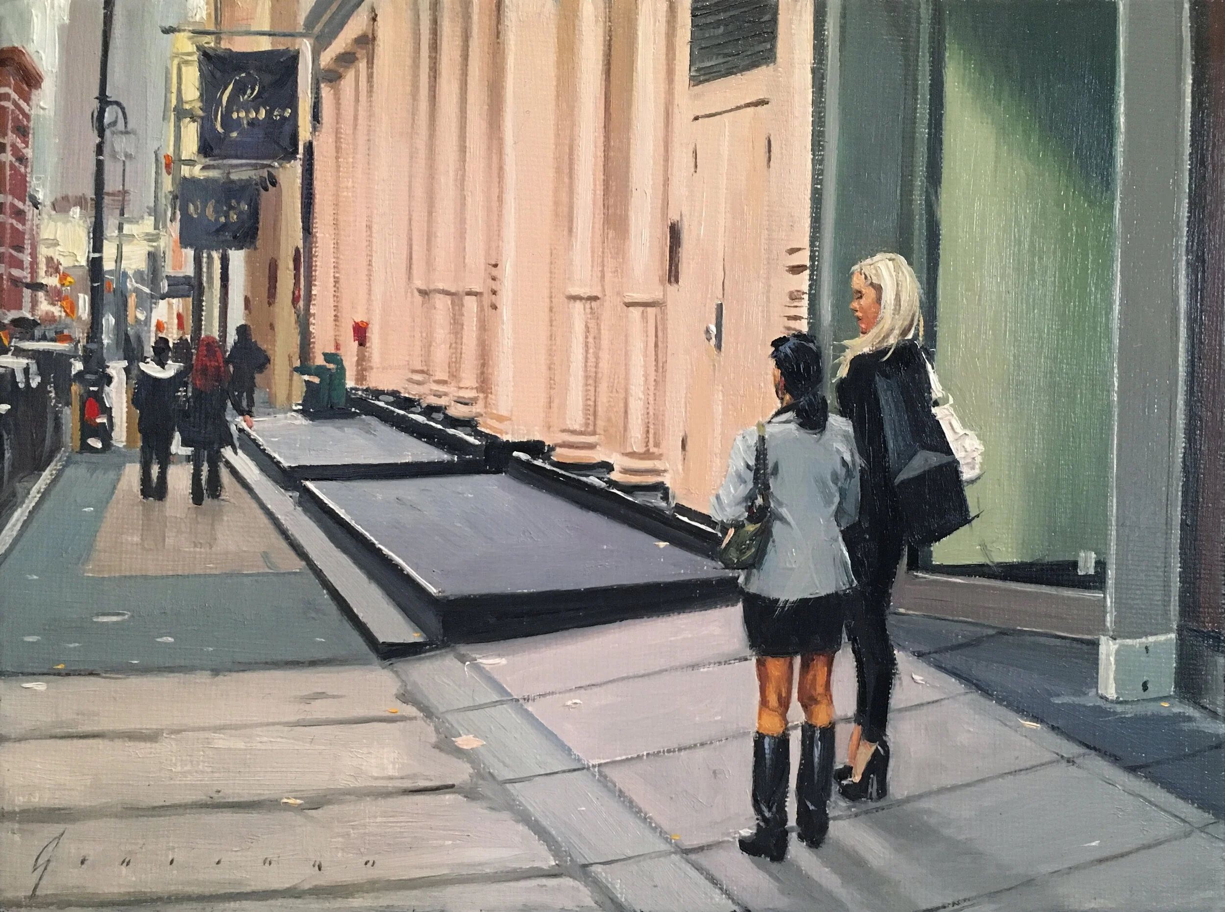 Conversation in Soho 6x8 oil on canvas